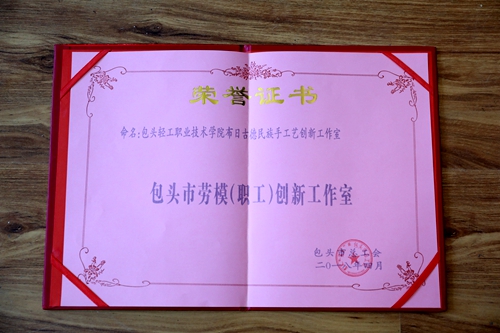 5月2日,包头市召开五一劳动奖、工人先锋号表彰大会,并命名2018年度包头市劳模(职工)创新工作室,包头轻工职业技术学院布日古德民族手工艺创新工作室被包头市总工会命名为包头市“劳模(职工)创新工作室”。