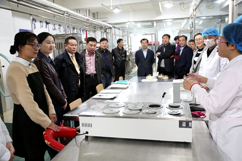 来宾一行实地参观考察了乳品与农牧技术学院、食品与药品工程学院及汽车服务学院相关实训基地。