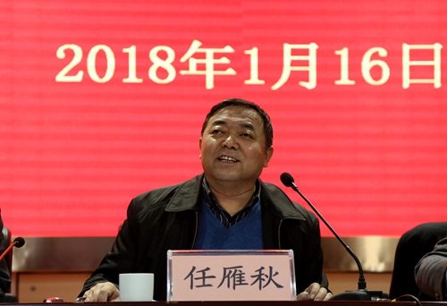 1月16日上午,学校召开2018年度领导干部大会。校领导任雁秋、姚锡锋、张延明、薛富、辛利民、刘青山、陈芳、武建新、禹文龙出席,学校负责人及以上领导干部、副高以上职称教师参加会议。