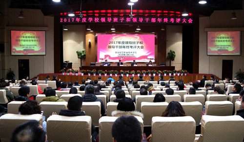 按照市委统一安排和部署,1月17日下午,学校召开2017年度领导班子和领导干部年终考评大会。市委第七考评组组长、市委组织部部务委员刘俊义,考评组副组长、市纪委派驻办主任苏雅勒图,考评组联络员、市委组织部干部四科科长何丽仁及考评组全体成员出席参加会议,学校领导班子成员、科级以上干部共188人参加会议。