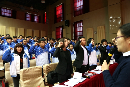 全体团员重温入团誓词。