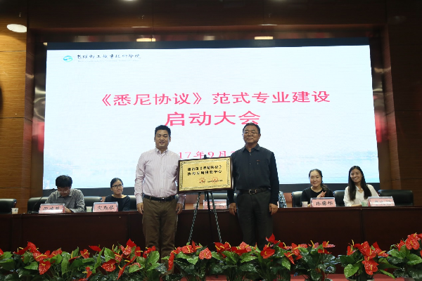 启动会上,任雁秋院长和周凌波副总裁代表双方共同签订了《“按照< 悉尼协议>范式开展专业建设”项目合作框架协议》,共同为“自治区《悉尼协议》协同应用研究中心”揭牌,共同为首批建设的三个专业核心团队成员颁发了聘书。