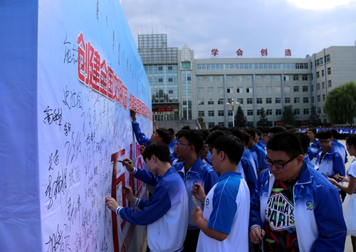 经过内蒙古自治区精神文明建设委员会办公室及内蒙古自治区教育厅综合考核评定,我校被推荐为第一届全国文明校园候选学校,全国民族团结示范单位,目前已进入公示期。签名活动的举行标志着此项工作已经进入全员参与、全面冲刺的关键阶段。通过此次活动,充分调动了全校师生的积极性、主动性、创造性,形成创建全国文明校园、全国民族团结进步示范单位的强大合力。