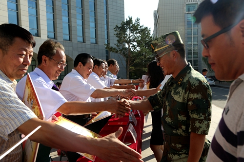 会上,举行了2017年入伍学生欢送仪式。2017年,我校共有76名大学生响应党和国家号召,经过严格政审,光荣成为中国人民解放军战士。值得庆贺的是周泉、陈书楷2名同学,光荣的被中国人民解放军三军仪仗队录取。