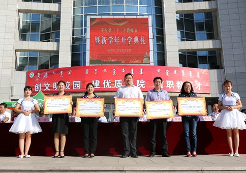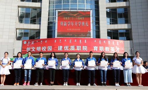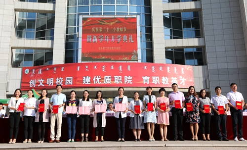9月8日下午,在庄严的国歌声中,包头轻工职业技术学院庆祝第三十三个教师节暨新学年开学典礼拉开帷幕。校领导敖旭鹏、任雁秋、姚锡锋、张延明、薛富、辛利民、刘青山、陈芳、武建新、禹文龙出席,各二级学院和党政、教辅部门主要领导以及全体教职工、学生出席参加大会。