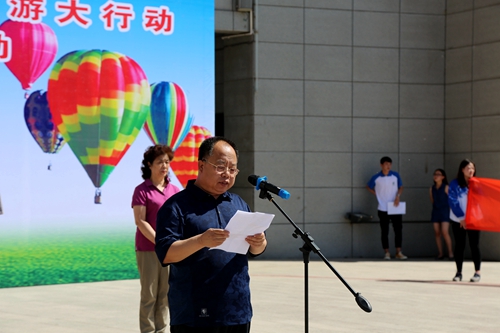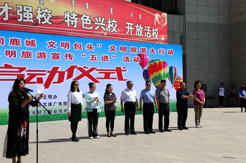 5月26日下午,包头市“德润鹿城 文明包头”文明旅游大行动暨文明旅游宣传“五进”活动启动仪式在我校举行。包头市委宣传部副部长、文明办主任盖连玉,青山区政府副区长苏浩,包头市旅游局副局长李福亮,学校党委委员、副院长薛富等出席。