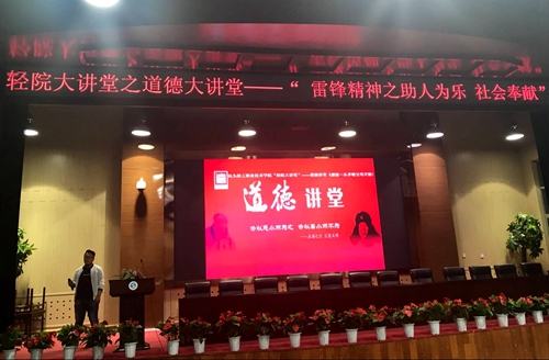6月13日下午4:30,今年的轻院大讲堂之道德讲堂开讲了,这次的主题是“雷锋精神之助人为乐 奉献社会”,这次道德讲堂共有八个环节,分别是省自身、唱歌曲、看短片、诵经典、崇德礼、讲故事、谈感悟、送吉祥。在课程当中,同学们或跟随音乐,对自己近一段时间的行为进行反省;或齐声朗诵雷锋同志语录,重温雷锋精神给我们带来的心灵洗涤;或表达对崇高道德的敬仰,向道德高尚的先辈们鞠躬致意;或讲述身边的学雷锋故事,透过“身边人讲身边事、身边人讲自我事、身边人教身边人”的形式,感受道德的花香,重温仁爱的美德。来自各二级学院的学生代表们参加了本次课程。