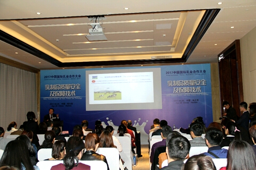 4月20日下午,2017中国国际乳业合作大会之乳制品质量安全及保障技术论坛由党委委员、乳品与农牧技术学院院长武建新主持,由美国威斯康星州SteveIngham、中国农科院研究员郑楠和党委书记敖旭鹏等7位专家作了主题报告。