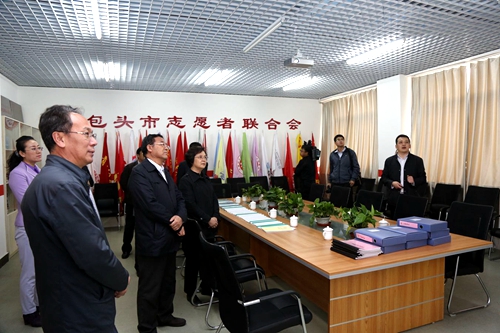 4月19日,包头市委常委、宣传部部长乌云,宣传部常务副部长李俊、副部长盖连玉来校,对志愿服务工作情况进行调研指导,党委副书记、院长任雁秋,党委副书记、纪委书记姚锡锋陪同。参观过程中,宣传统战部副部长(志愿服务学院副院长)郑贵民详细介绍了志愿服务工作和活动开展情况。
