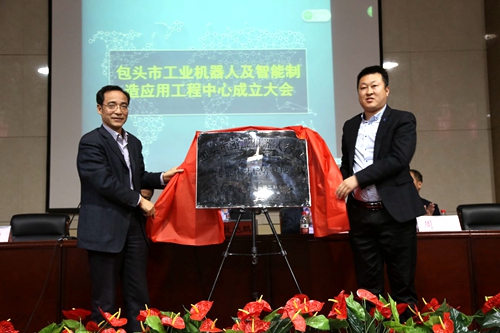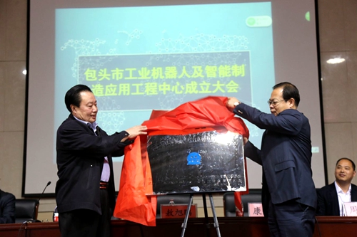 会上,党委书记敖旭鹏与包头市经济和信息化委员会主任康世存共同为包头市工业机器人及智能制造应用工程中心揭牌。