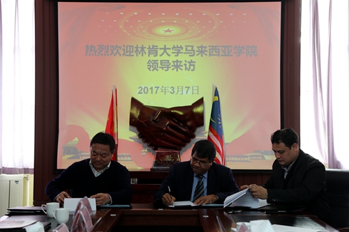 3月7日,林肯大学马来西亚学院院长Dr.Amiya Bhaumik、林肯大学马来西亚学院中国外事办主任桑迪普二人到访我校参观考察。