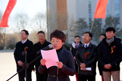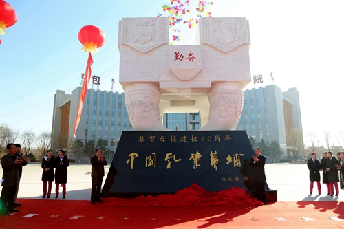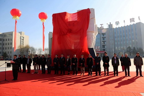 仪式上,包头轻工职业技术学院院长任雁秋致辞,他首先代表全体师生向捐建“创业宝鼎”的杰出校友杨文俊表示了衷心的感谢。他指出,在学校建校50周年之际,杨文俊校友为学校捐建了“中国乳业黄埔”宝鼎,以突显学校办学实力和办学特色。今年6月18日,学校举行了“建校60周年成果展”系列活动,杨文俊校友再次参加了学校举办的相关活动,看到学校发展迅速、变化巨大,提出为学校捐建创业宝鼎,以彰显轻院人和轻院学子艰苦奋斗征程。他强调,鼎有四足,是国之重器,象征四海升平,万事和谐,基业稳固。今天,创业宝鼎顺利竣工揭幕,不仅提升了学校蒸蒸日上的新气象和轻院学子不懈努力的新风貌,打造了学校AAA景区的新景致,成为学校的一大新亮点。相信学校以“创业宝鼎”的隆重揭幕为新节点,在全体师生的共同努力下,一定会越来越好,成为自治区乃至全国的一流高职院校,培养更多像杨文俊校友这样的优秀人才,为包头市和自治区的经济社会发展做出更大贡献。希望同学们都能像杨文俊校友一样,成为一个造福家庭、光荣学校和贡献社会的杰出人才。
