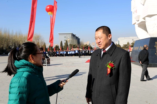 揭幕仪式结束后,包头电视台记者对内蒙古赛科星繁育生物技术股份有限公司董事长杨文俊和包头轻工职业技术学院院长任雁秋进行了采访。