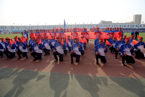 9月29日上午8点,在激扬的运动员进行曲中,国旗队、会标队、军乐队、彩旗队、志愿服务代表队、裁判员代表队和来自14个二级学院的师生代表队迈着整齐的步伐,喊着洪亮的口号,激情满怀、斗志昂扬地走过主席台。