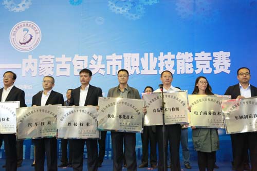 开幕式上,一机集团现代制造技术基地、包头轻工职业技术学院电子商务基地、包头职业技术学院焊接实训基地等22个实训基地被授予本市首批高技能人才专项公共实训基地。