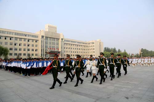 9月21日上午,学校在行知广场隆重举行新学期“升国旗•唱国歌”主题教育活动,纪念中国人民抗日战争暨世界反法西斯战争胜利七十周年。活动旨在师生铭记历史、缅怀先烈,珍视和平、开创未来。