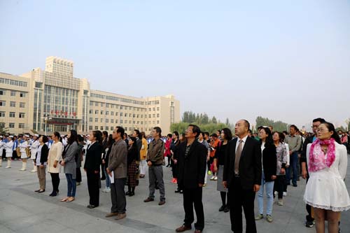 全校在校生及部分教师齐聚广场,党委委员、副院长张延明出席并讲话,党委委员、副院长辛利民主持。
