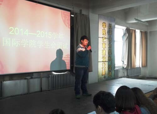 9月23日下午,国际学院在创业楼616室举行了2014-2015学年学生会换届竞选。此次换届竞选的学生会部门有纪检部、学习部、秘书部、外联部、组织部、文艺部和体育部。在竞选过程中,学生管理负责人、班主任、学生会原各部部长根据各部工作性质和工作内容认真考察了同学们的各方面能力。同学们在面对提问时,灵活应对,从容而自信,对所提出的问题认真作答。他们的言谈举止中流露出对学生会工作的真挚渴望,体现了当代大学生敢于挑战自我的信心与勇气。