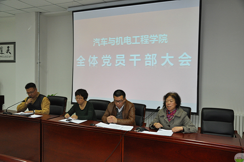 11月19日下午,汽车与机电工程学院在图书楼405多功能厅召开党员干部大会,深入学习党的十八届三中全会精神。汽车与机电工程学院全体党员、副科以上干部集中学习观看了十八届三中全会公报,汽车与机电工程学院党总支副书记、院长柏劲松对十八届三中全会公报进行了解读,副院长、党总支纪检委员王瑞清传达了十八届中纪委二次全会精神,党总支组织委员王继明就深入学习贯彻《习近平总书记一系列重要讲话精神》和党风廉政建设宣传教育活动进行了安排。学院党总支书记、副院长郭喜梅对民主生活会前期准备工作做了安排和部署,对深入学习贯彻《习近平总书记一系列重要讲话精神》和党风廉政建设宣传教育活动提出具体要求。参会党员干部学习了自治区8337”发展思路。