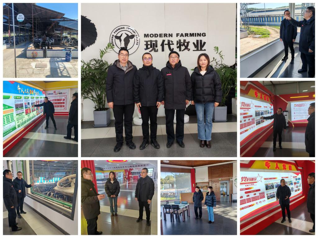 徐书记一行在现代牧业集团马鞍山牧场总经理王嘉铭陪同下,参观了现代牧业集团总部和现代牧业马鞍山牧场,随后又走进员工食堂和宿舍,最后双方开展座谈。