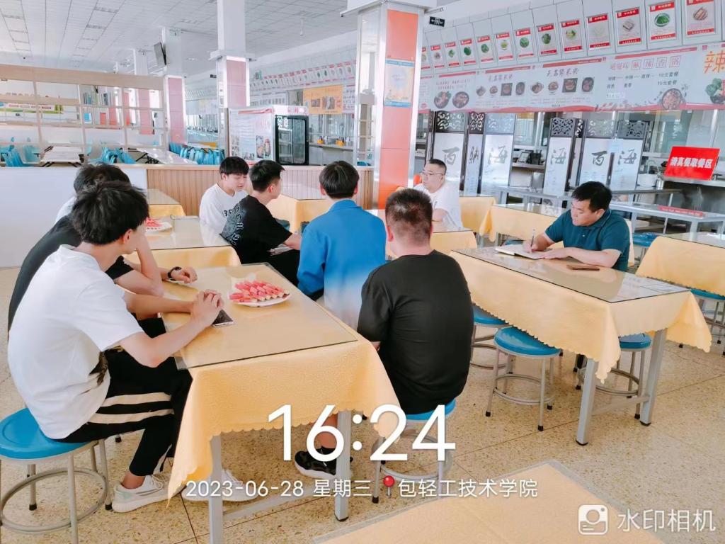 6月29日,国有资产与后勤管理处食品安全科协同学院团委组织学生代表在学生第一餐厅召开学期末餐饮座谈会,会议由金磊老师主持。