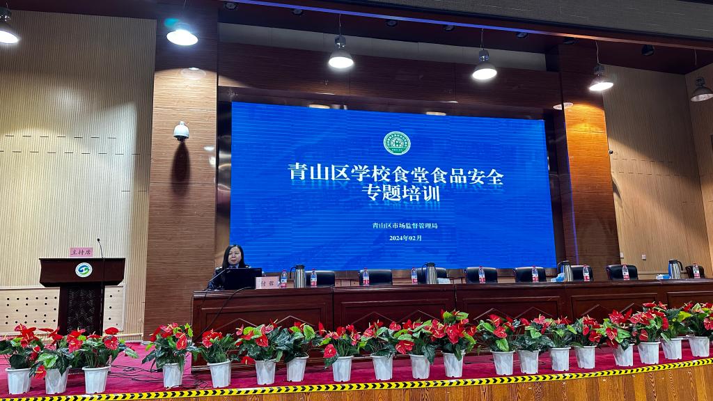 2024年2月26日,国有资产与后勤管理处组织学院供餐单位从业人员进行校园食品安全专题培训。本次培训特邀包头市青山区市场监督管理局付蓉局长主讲,付蓉局长就校园食品安全操作规范、安全生产规范、星级食堂评选方案、应急事件处理等方面进行了实操性较强的专题培训和典型案例分享。