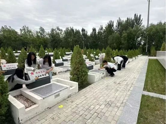 在团支书的带领下,前往革命烈士纪念碑开展祭奠与护碑行动。学生们仔细清扫墓碑,聆听团支书讲述戍边官兵在风雪中坚守岗位、暴雨中排查隐患的感人故事。通过沉浸式教育,学生们深刻体会到“界碑在脚下,祖国在心中”的厚重内涵。